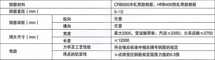 鋼筋焊接網 鋼筋焊接網是在工廠制造,用專門的焊網機采用電阻點焊(低電壓、高電流、焊接接觸時間很短)焊接成型的網狀鋼筋制品。是縱向和橫向鋼筋分別以一定間距排列且互成直角,全部交叉點均用電阻點焊在一起的鋼筋網片。 一般采用GBl3788規定的牌號為CRB550冷軋帶肋鋼筋和GBl499規定的牌號為HRB400熱軋帶肋鋼筋。作為一種新型、高效、優質的鋼筋混凝土結構建筑鋼材而大量應用在工業與民用房屋的樓板、屋蓋、墻體、地坪、混凝土路面、橋面鋪裝、機場跑道、隧道襯砌、水利設施、碼頭堆場等方面。